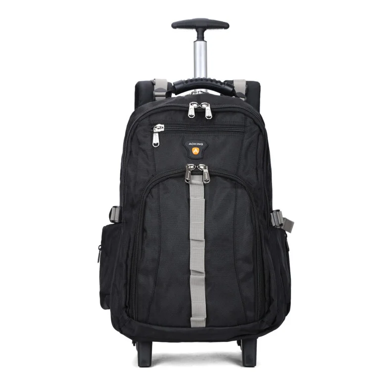 The Aoking Trolley Backpack HLN4558 is a smart and reliable choice for travel, school, or work. It combines the comfort of a backpack with the convenience of a trolley, featuring smooth wheels and a sturdy retractable handle. With a spacious main compartment, organized pockets, and durable construction, this backpack is designed to carry your essentials with ease and style.
